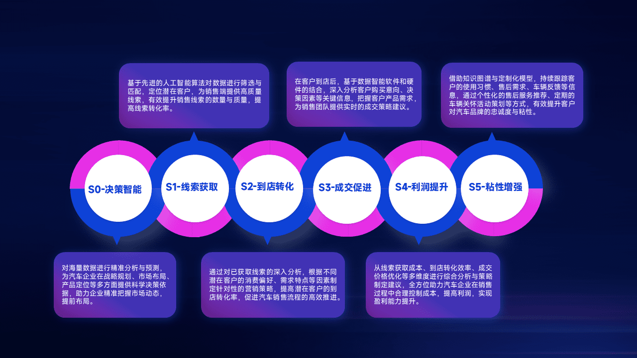 通过拓宽潜在客户来源、、、优化线索分配并提高到店转化率,,,以增强销售效率。。同时,,利用线索数据不断优化分析模型,,,,有效提升转化率,,扩大营销影响力。。。